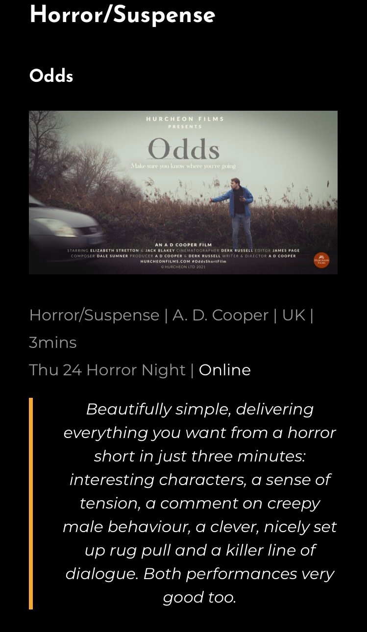 While it continues its festival round, the film is only available for viewing on request. Use the contact button on the main menu if you would like to watch it.