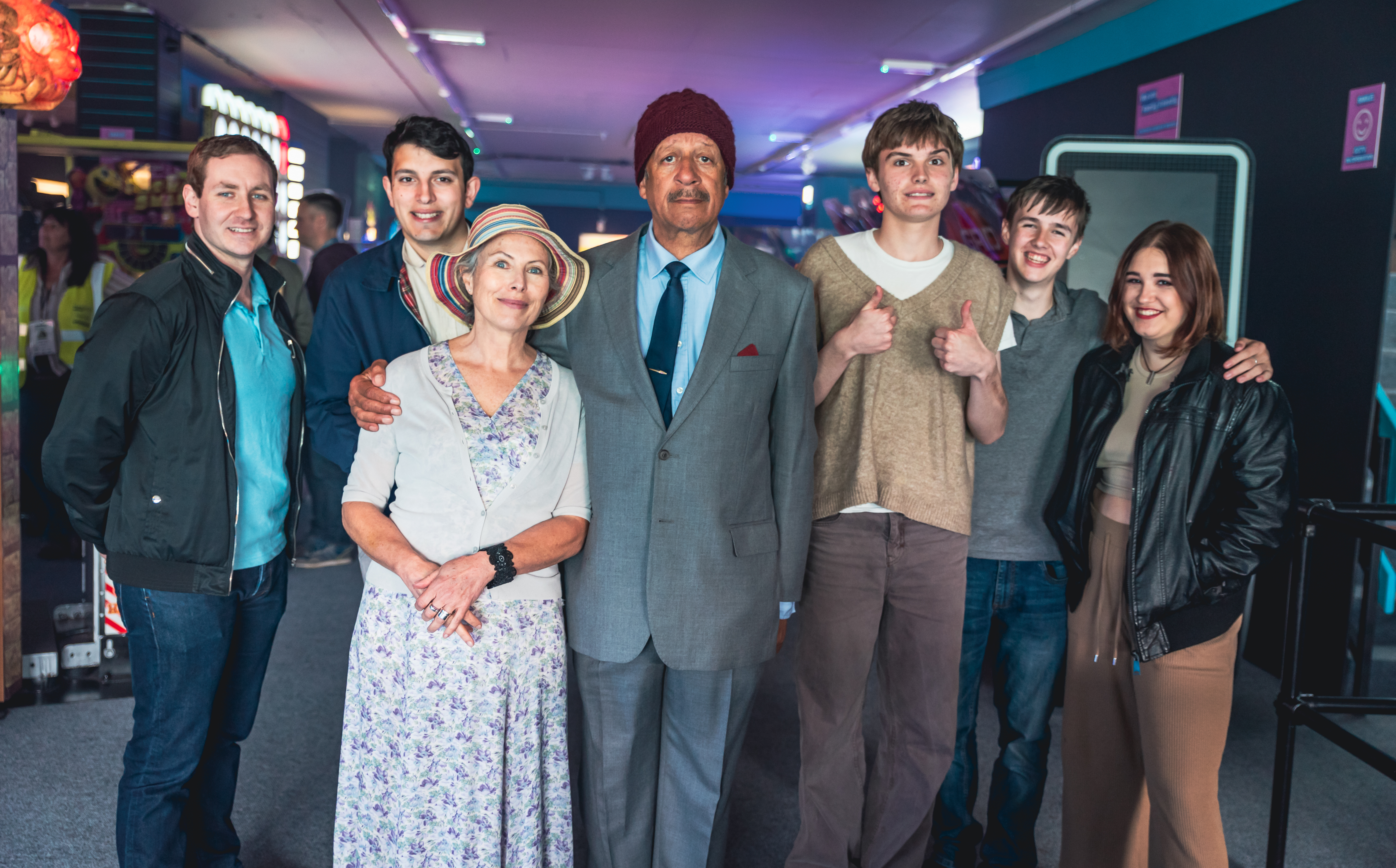 The leads with the background artists.